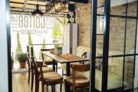 Кофейня радует гостей разнообразным кофе и пирожными. Интерьер был разработан авторами кофейни ближе к стилю Лофт. Кафе рассчитан на 35 посадочных мест.