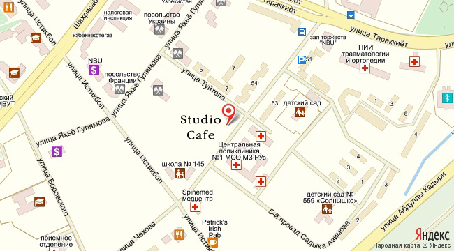 Studio Cafe – культовое заведение в центре Ташкента, место из категории must see. Именно здесь десять лет назад стали знакомить со стандартами международной кухни и идеального сервиса, привили привычку вести переговоры, назначать свидания, проводить семейные мероприятия, смотреть прямые трансляции главных спортивных соревнований и просто релаксировать в модном кафе. Владелец Studio Cafe – столичный трендсеттер Сарвар Каратаев, один из авторов сайта myday.uz.